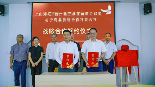 在与会领导的共同见证下,联盟轮值主席蒋雨海与柘坑戴村第一书记杨骅签署了结对共建协议;与宁海供销社合作社联合社主任任建平签署了“宁海珍鲜”品牌推广战略合作协议。